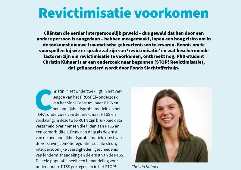 Christin Kühner, Promovenda STOP! Onderzoek, heeft onlangs een interview gegeven aan het VGCt (Vereniging voor Gedrags- en Cognitieve therapieën) magazine. Christin Kühner is PhD-student en wordt begeleid door Kathleen Thomaes, […]